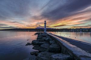 Bright, peaceful and serene by the Lake Leman on a cold, fresh winter morning